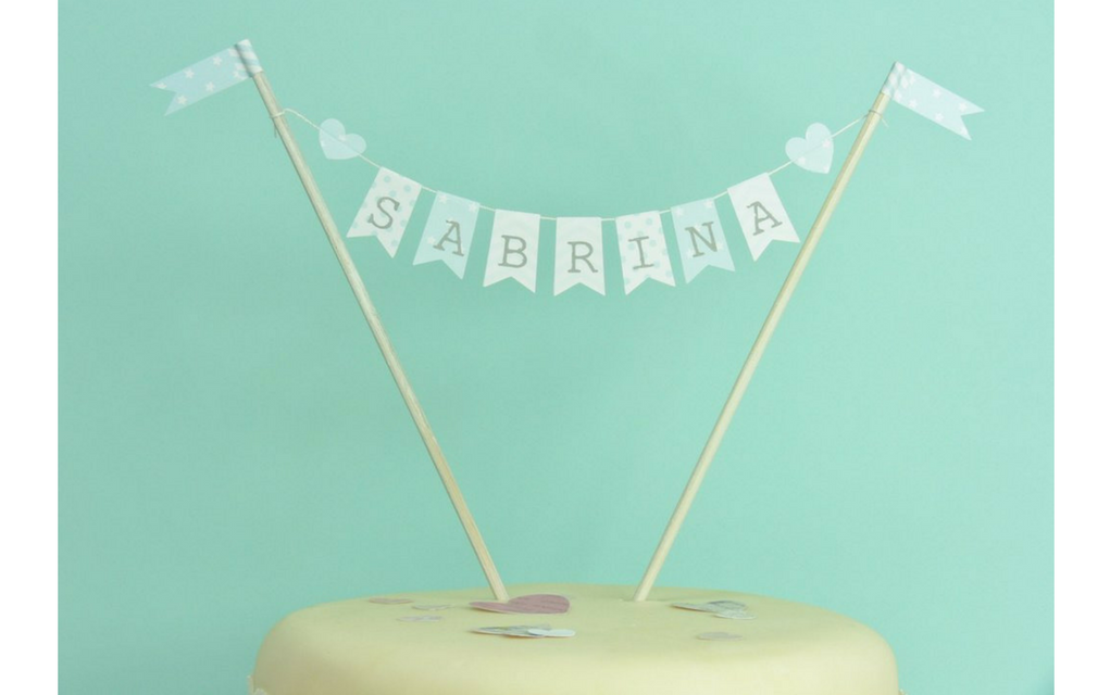 All you need are toothpicks, wooden skewers or paper straws to hold the bunting, some fine string or twine, and your bunting flags – these could spell out your child’s name, or colour coordinate with the rest of your communion decorations.