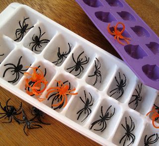 What a super, simple idea for Spider Ice Cubes– the perfect Halloween addition to any drinks! Freeze rubber/plastic spiders in ice cube trays filled with orange juice. When the cubes are frozen, fill your drink cup with ice cubes then add your soda or juice.