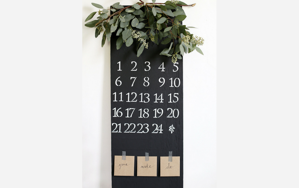Create a reusable advent calendar with chalkboard paint, like this great one from The Merry Thought. Plywood is painted with chalkboard paint, then your child can use chalk to mark off each day and choose an activity from one of the ‘Give’, ‘Make’ or ‘Do’ envelopes.