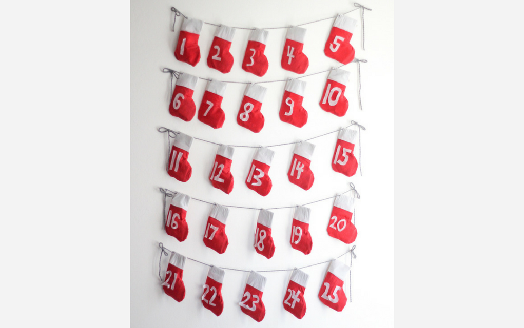 Martha Stewart’s baby sock calendar is cute beyond belief – but you could make use of mismatched socks and mittens for an equally effective look.