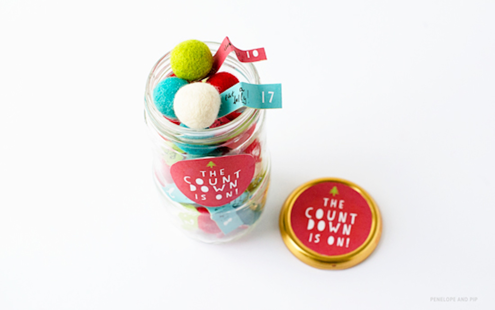 We love Penelope and Pip’s idea for Advent in a jar on PoppyTalk. Using craft materials you probably have already (or can easily source), create 24 activity tokens and decorate with pompoms for a little festive cheer! This is a really kid-friendly (and space-saving!) way to have some family fun.